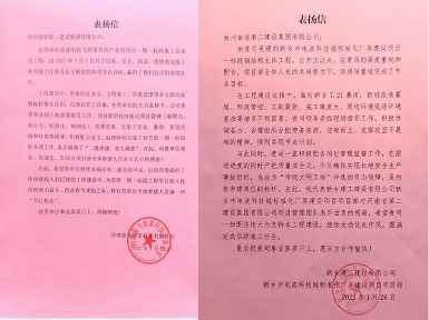 112022.02新乡建工建设有限公司和河南新飞智家科技有限公司向星空官方站网站登录入口-星空online(中国)发来表扬信 -